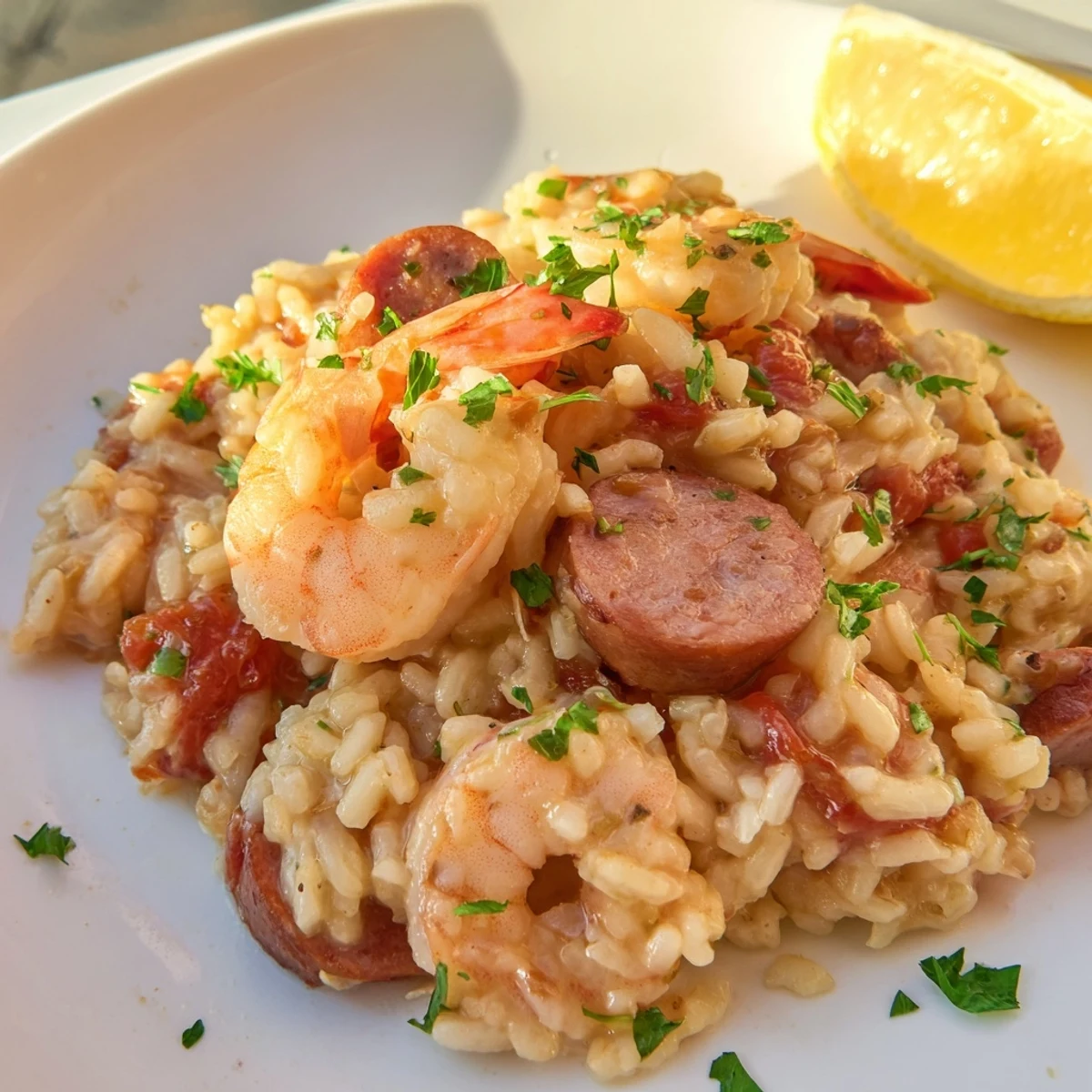 The first time I attempted to merge risotto technique with jambalaya flavors, my New Orleansborn neighbor leaned over my balcony railing and announced I was either a genius or completely out of my mind. The smell of andouille sizzling with garlic and holy trinity vegetables had drifted two floors down. When we finally sat down to bowls of this creamy spicy fusion, she took one bite and said Alright then genius Im converted.