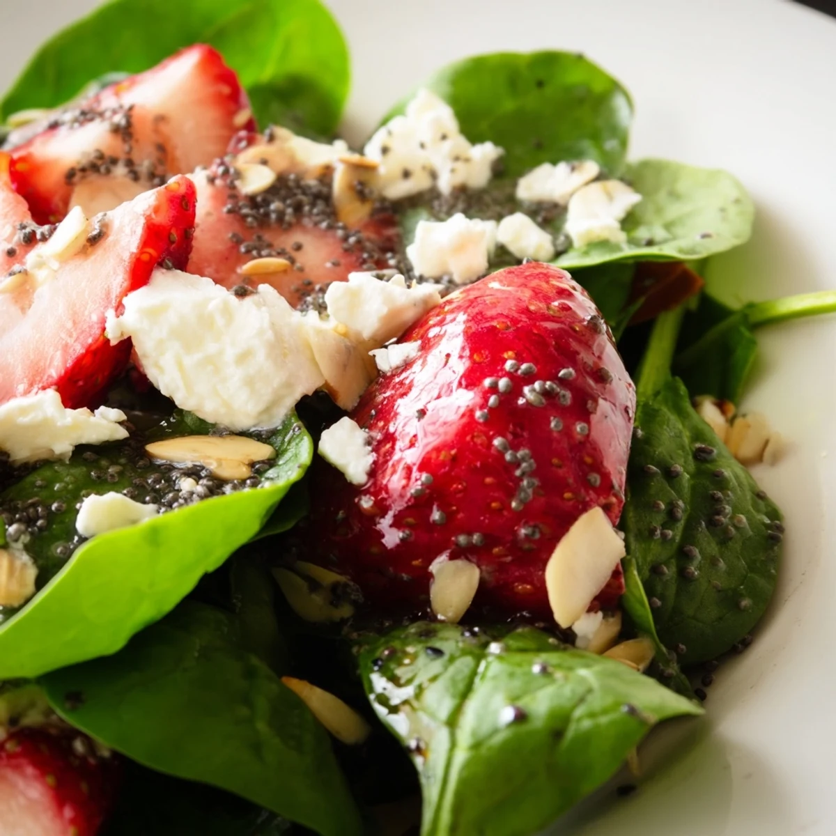 This vibrant salad brings together juicy fresh strawberries, crisp baby spinach, and tangy red onion for a perfect balance of sweet and savory. The homemade balsamic poppy seed dressing adds rich, velvety depth with just a hint of honey sweetness. Toasted almonds and crumbled feta provide satisfying crunch and creamy contrast, while sunflower seeds offer optional nutty texture. Ready in just 15 minutes with no cooking required, this versatile dish shines as a light lunch, elegant starter, or colorful side at warm weather gatherings.
